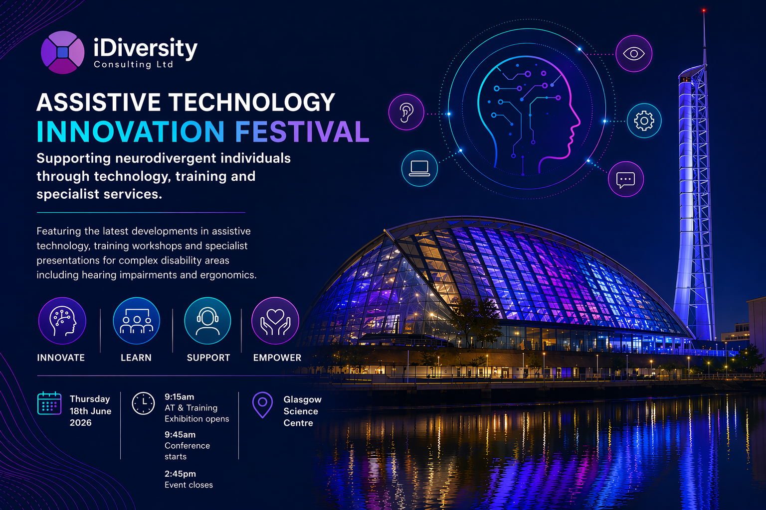 Join us for our one-day Assistive Technology Innovation Festival at the Glasgow Science Centre, bringing together professionals, organisations, and specialists focused on supporting neurodivergent individuals.